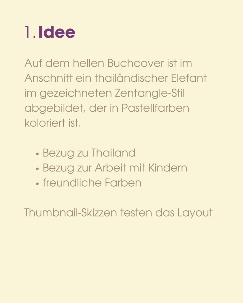Freundlich sollte es wirken, mit Bezug zu Thailand und ihrer Arbeit mit den Kindern dort.