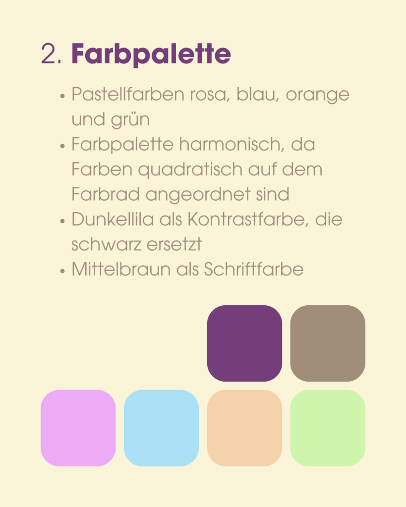 Die Kontrastfarbe ist ein Dunkellila, denn Schwarz wirkt auf dem hellen Hintergrund zu stark.