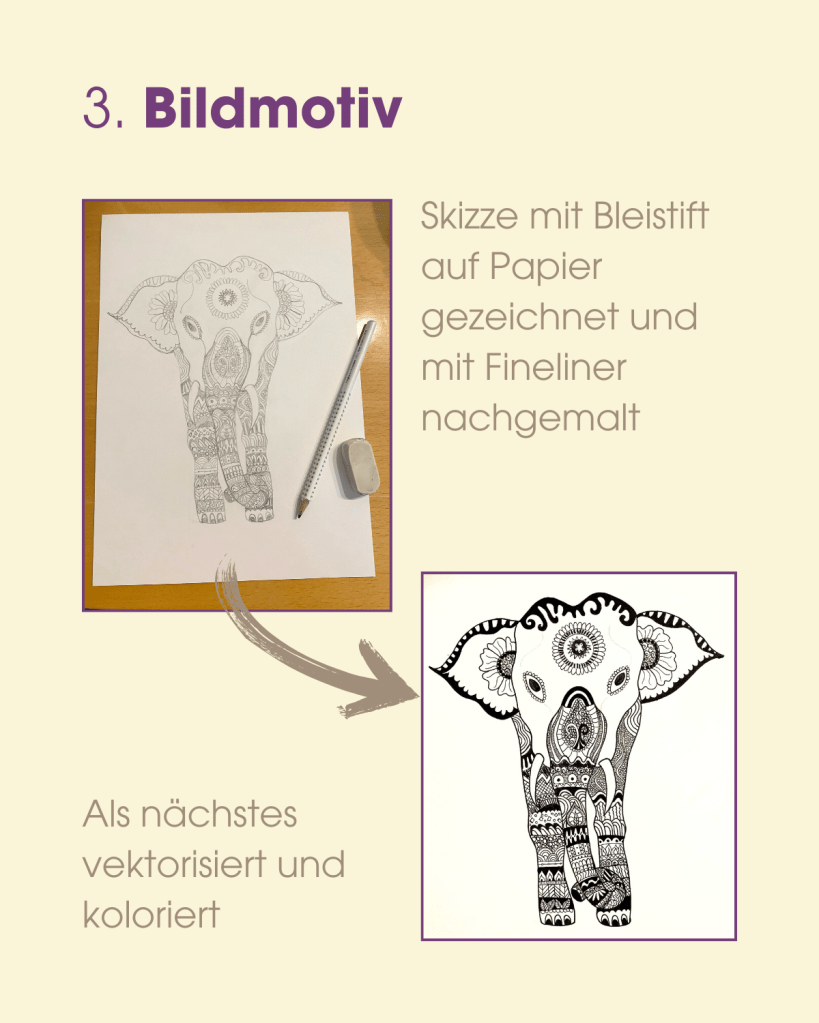 Wir entschieden uns für den thailändischen Elefanten im Zentangletil.
