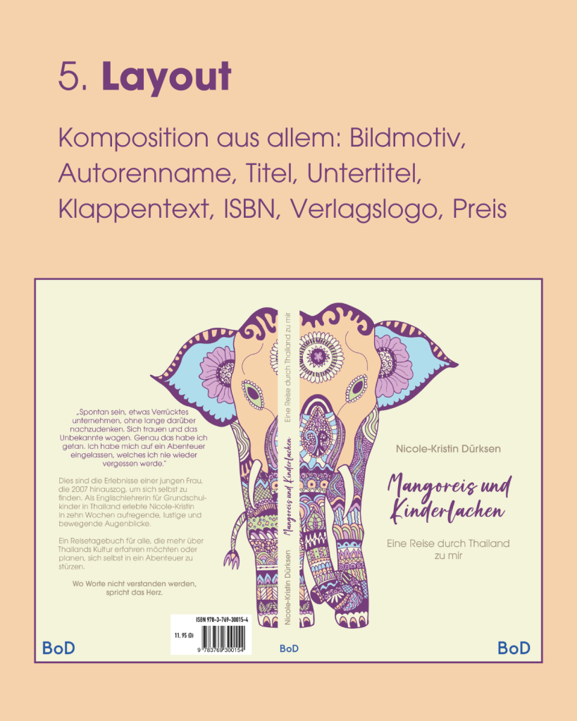 Der Autorenname und der Buchuntertitel müssen gut lesbar sein.